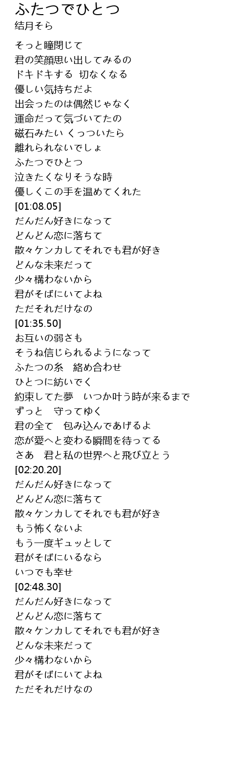 | [01:47.90] | ふたつの糸 絡め合わせ |