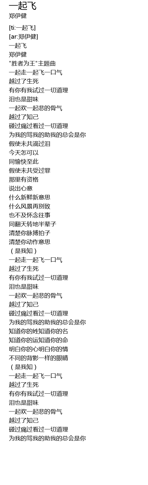| [01:41.284] | 一起走一起飞一口气 |