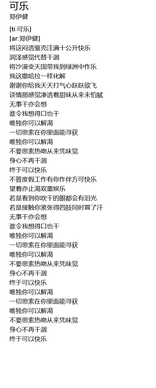 | [00:31.679] | 将沙漠变天国带我到绿洲中作乐 |