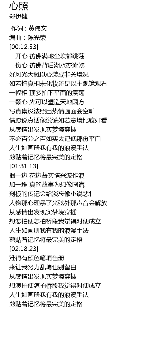 | [00:12.53] | 一开心 彷佛满地尘埃都跳荡 |