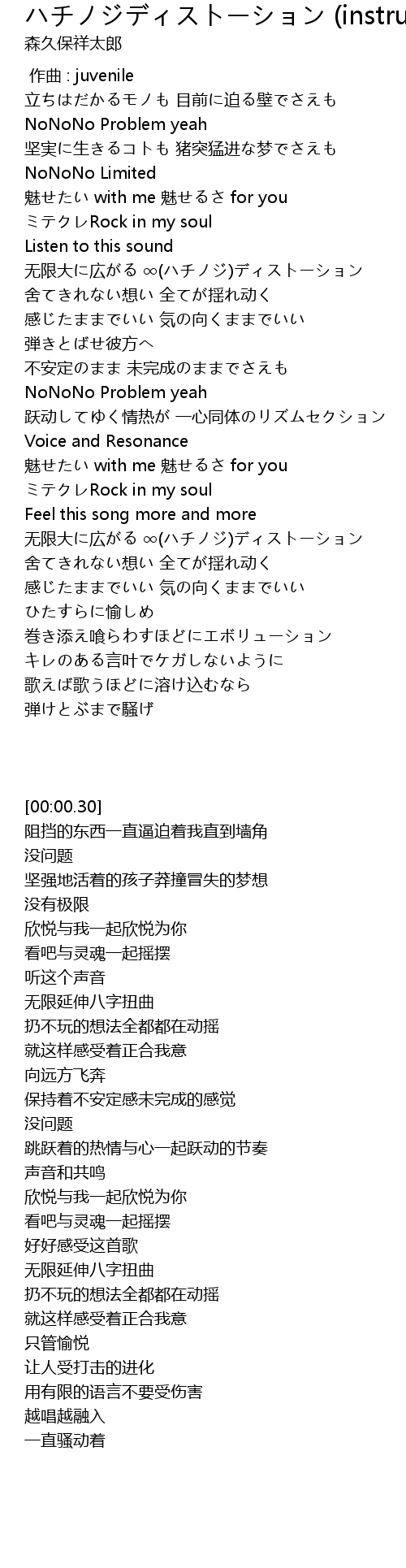| [01:51.19] | 无限大に広がる ∞(ハチノジ)ディストーション |