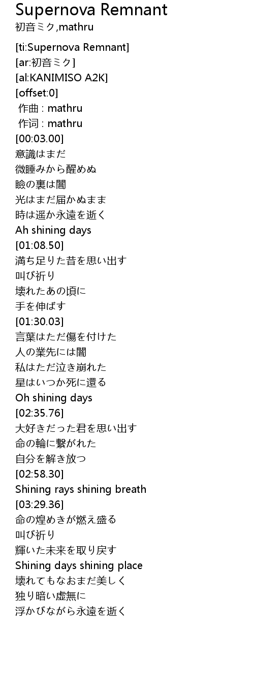 | [03:54.81] | 壊れてもなおまだ美しく |