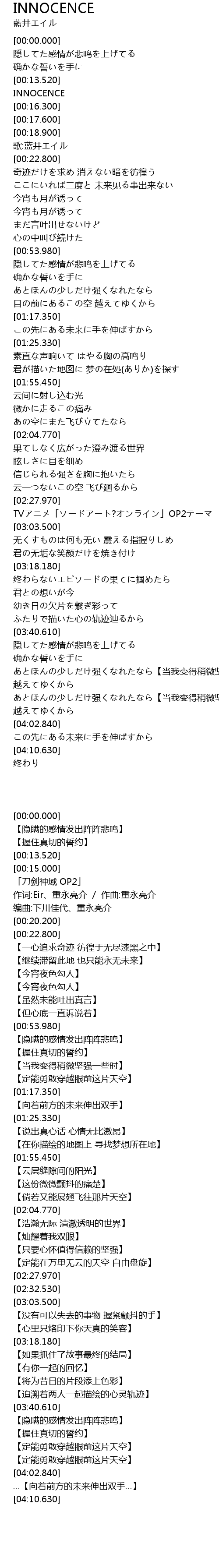 | [02:32.530] | TVアニメ「ソードアート?オンライン」OP2テーマ |