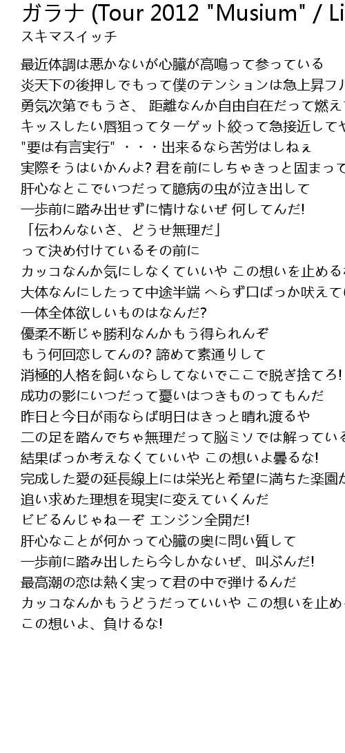 | 結果ばっか考えなくていいや この想いよ曇るな! | |