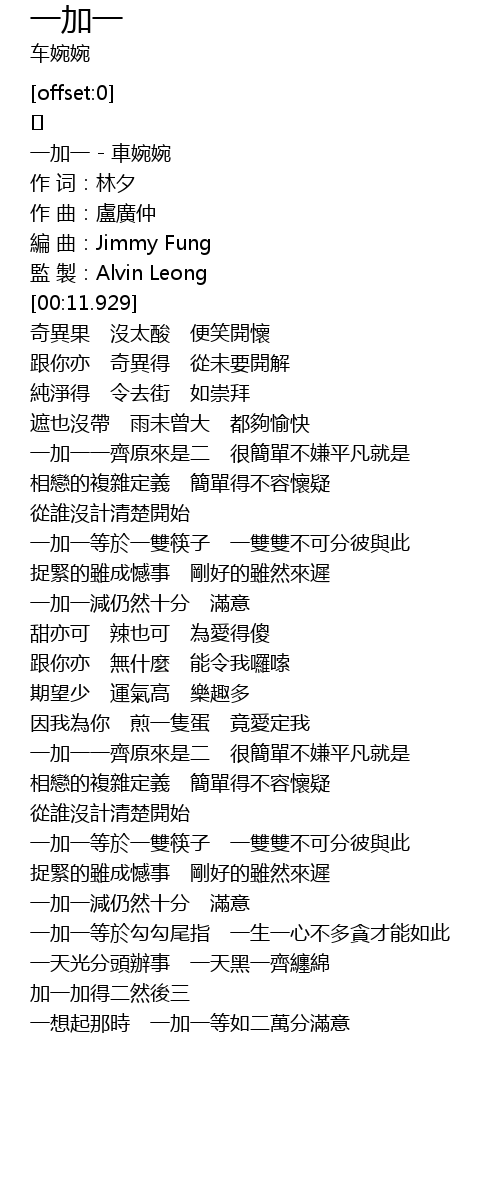 | [03:03.300] | 一想起那時 一加一等如二萬分滿意 |