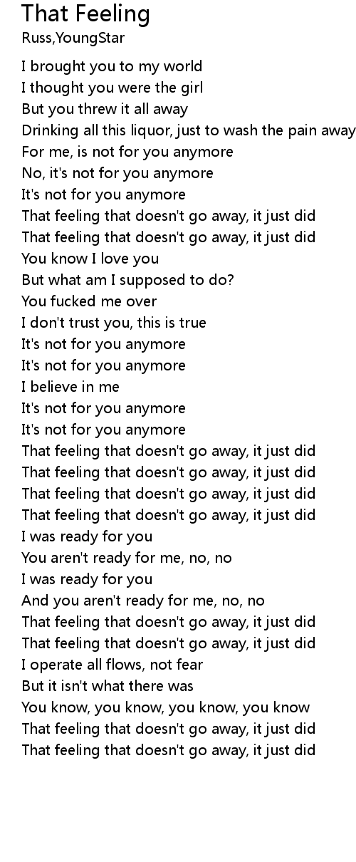 | [02:22.25] | That feeling that doesn't go away, it just did |