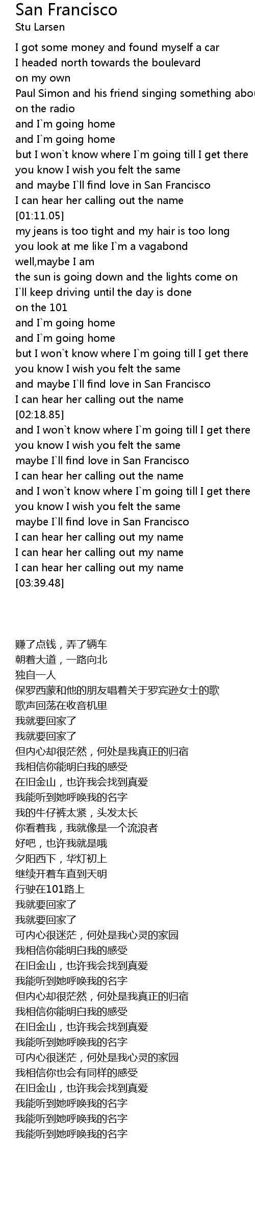 and maybe I`ll find love in San Francisco |