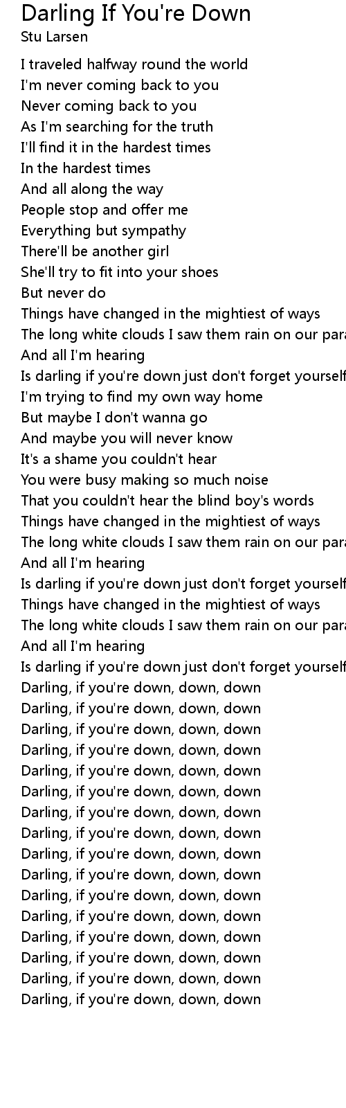 Darling, if you're down, down, down |