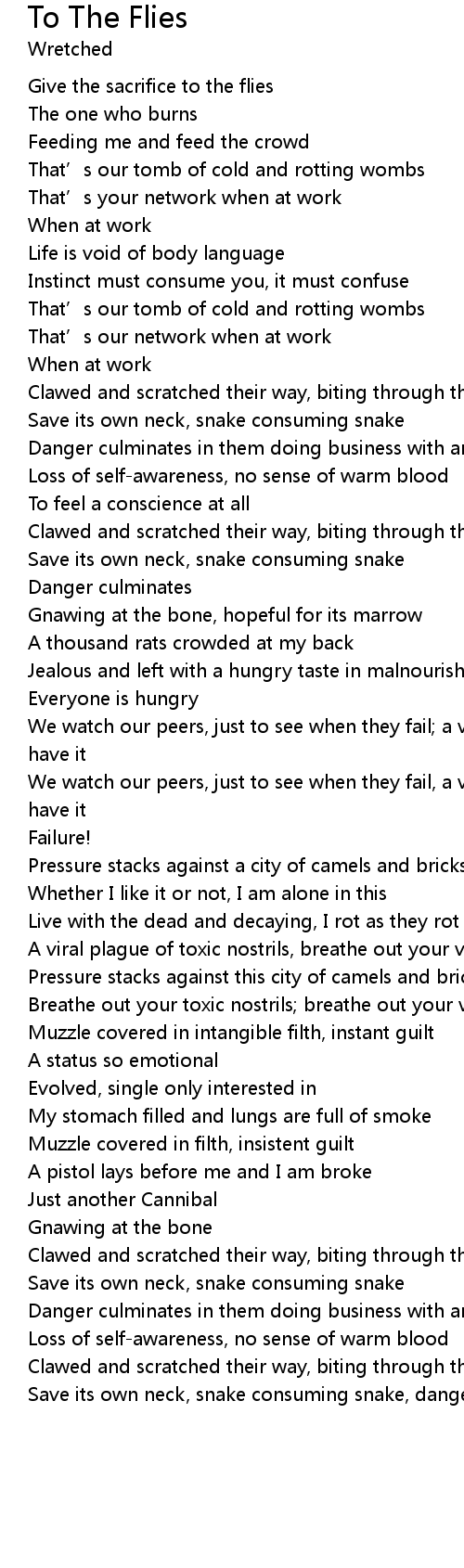| A viral plague of toxic nostrils, breathe out your violence | |