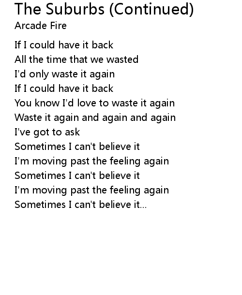 | Song | The Suburbs (Continued) |
