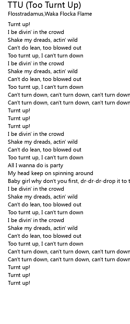 Too turnt up, I can't turn down |