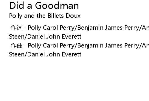| [00:00.000] | 作词 : Polly Carol Perry/Benjamin James Perry/Andrew Jonathan Steen/Daniel John Everett |