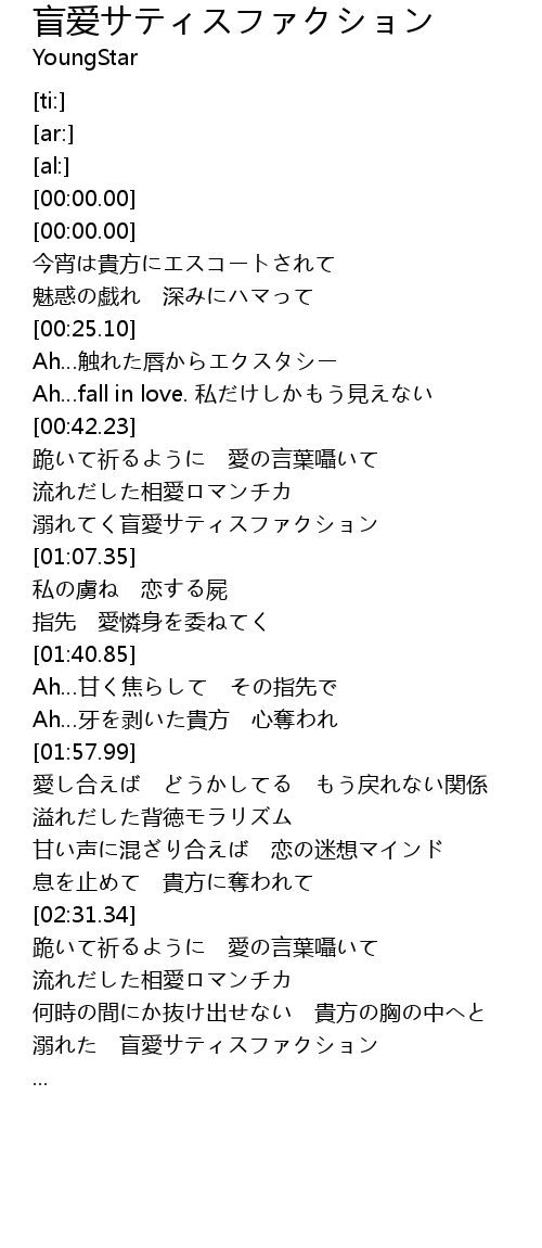 | [00:58.41] | 溺れてく盲愛サティスファクション |