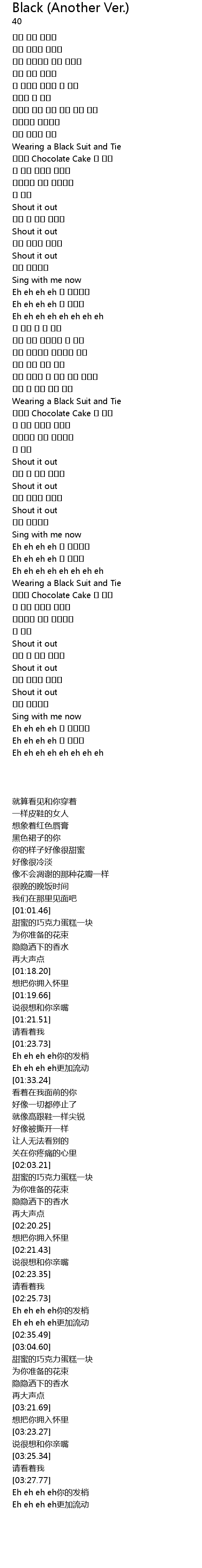| [00:39.21] | 붉은 립스틱에 검은 치마를 |