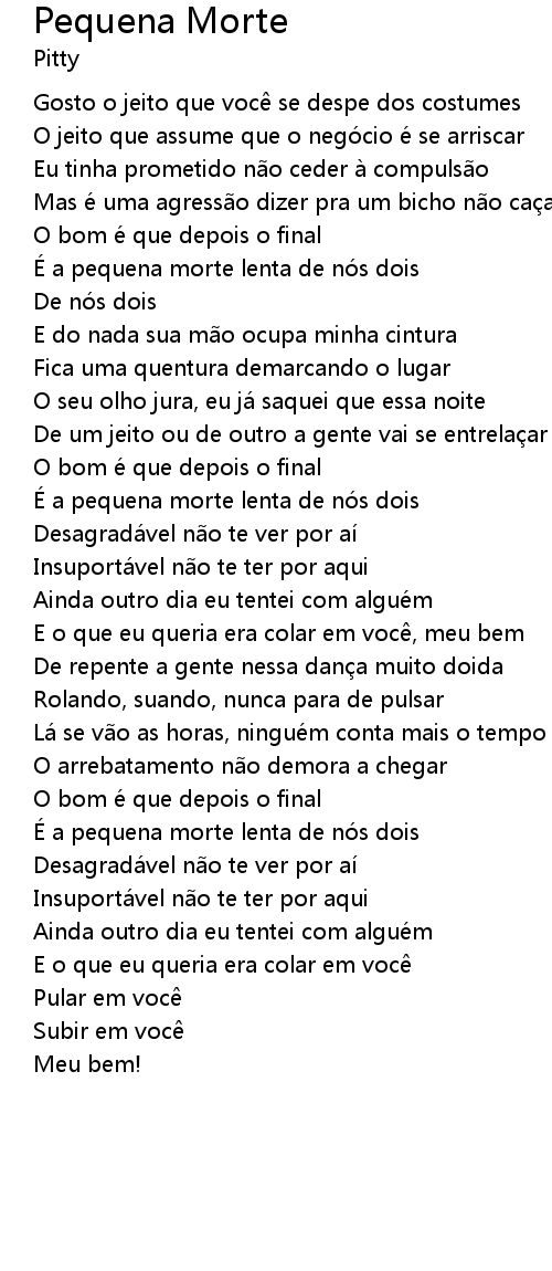 | É a pequena morte lenta de nós dois | |