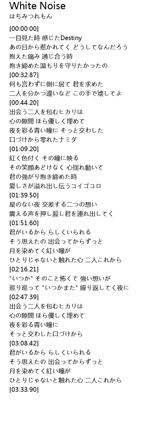 | [00:11.12] | 一目見た時 感じたDestiny |