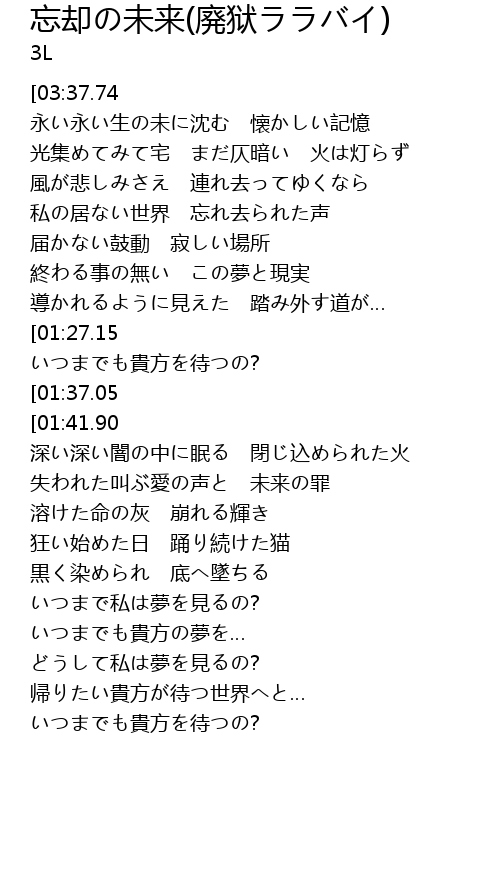 | [02:27.30] | 失われた叫ぶ愛の声と 未来の罪 |