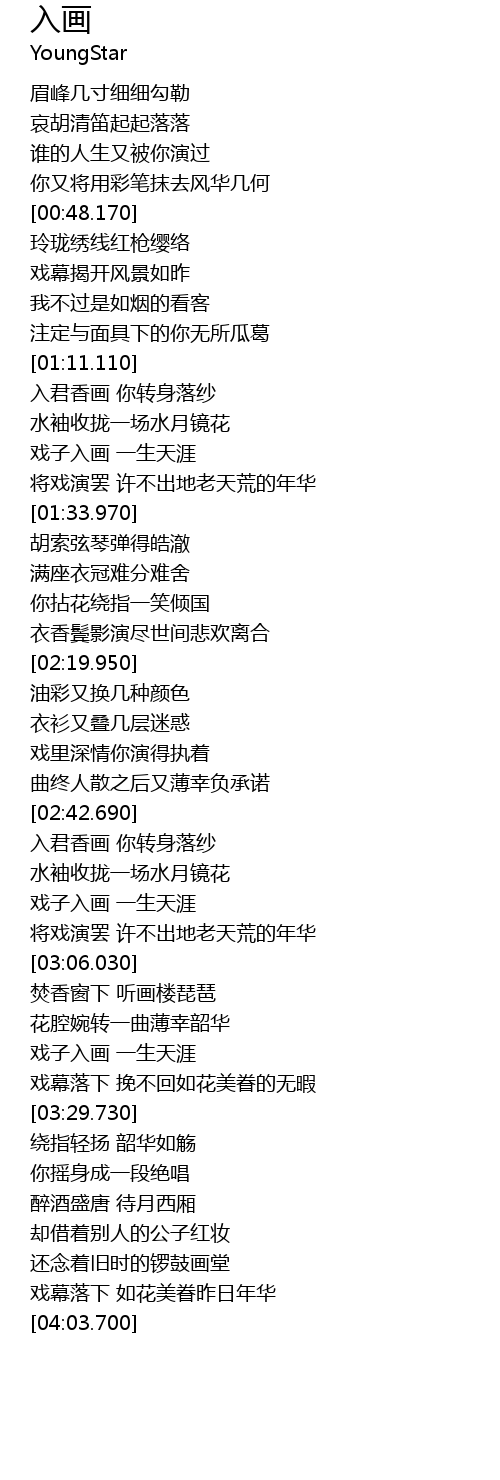| [02:59.920] | 将戏演罢 许不出地老天荒的年华 |