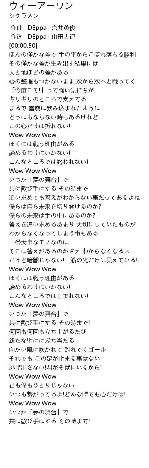 [03:09.99] Wow Wow Wow