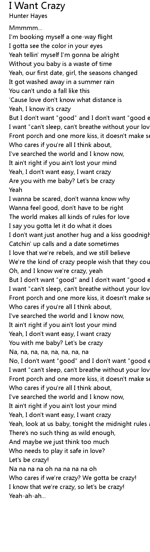 Yeah, I don't want easy, I want crazy |