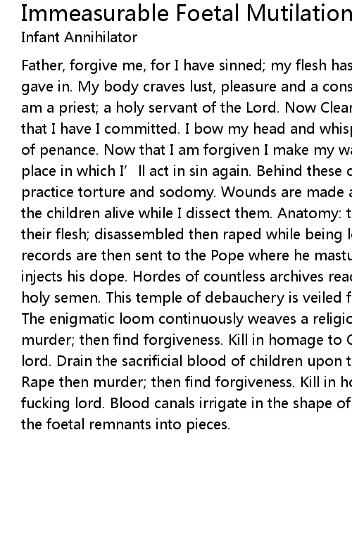 | Rape then murder then find forgiveness. Kill in homage to Christ our | |