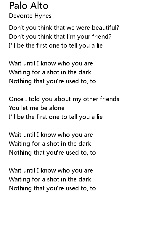 | Song | Palo Alto |