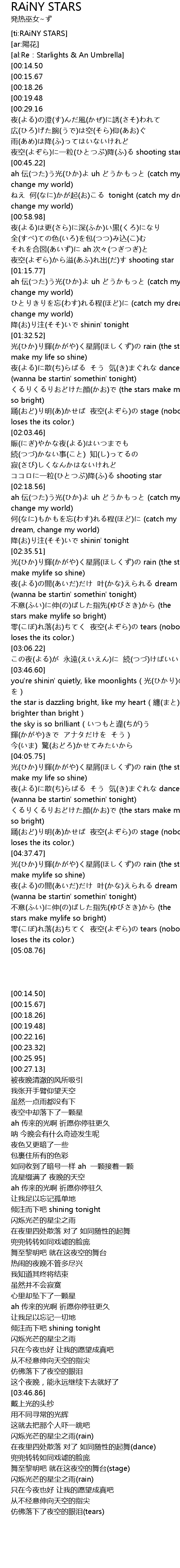 | [02:15.22] | ココロに一粒(ひとつぶ)降(ふ)る shooting star |