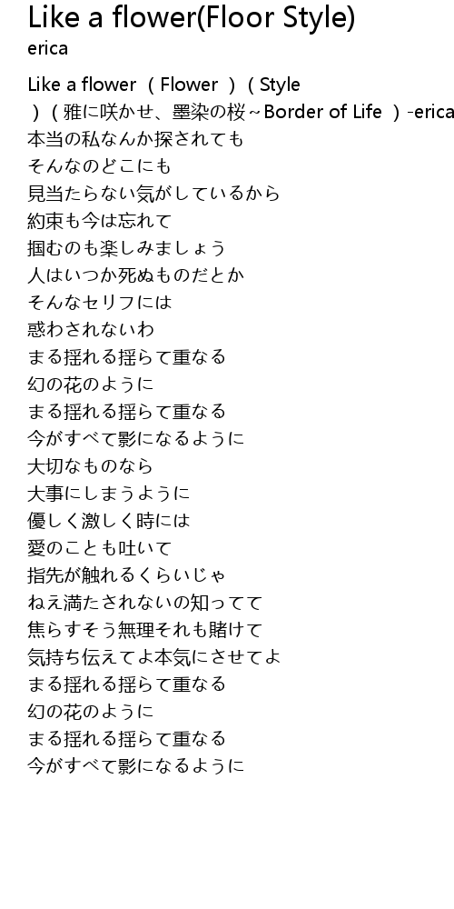 | [00:00.00] | Like a flower Flower Style yǎ xiào mò rǎn yīng Border of Life erica |