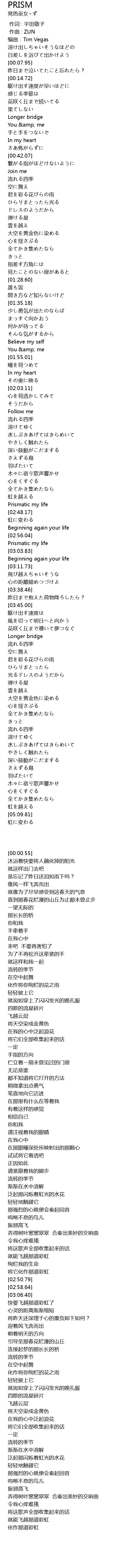| [02:58.64] | Prismatic my life |