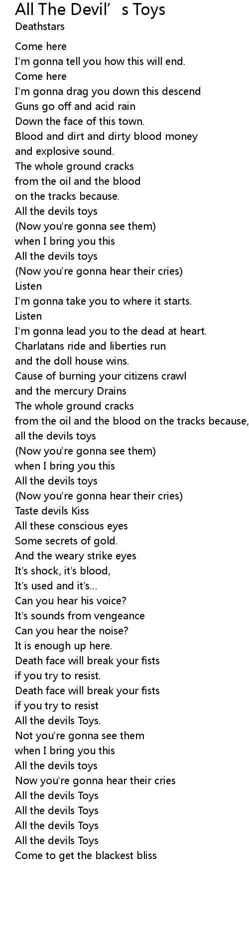 | [02:00.67] | All the devils toys |