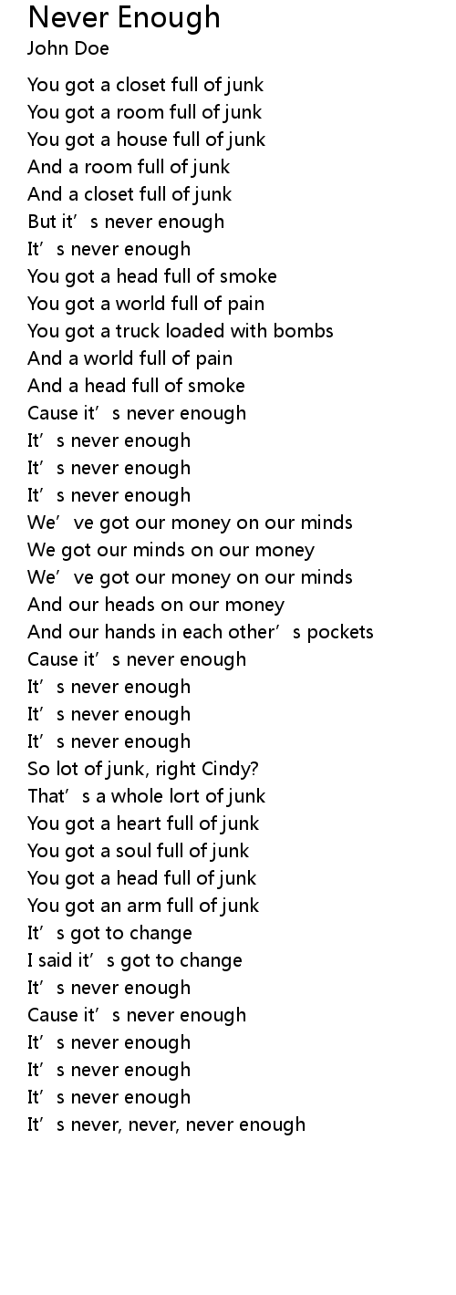 | It' s never, never, never enough |