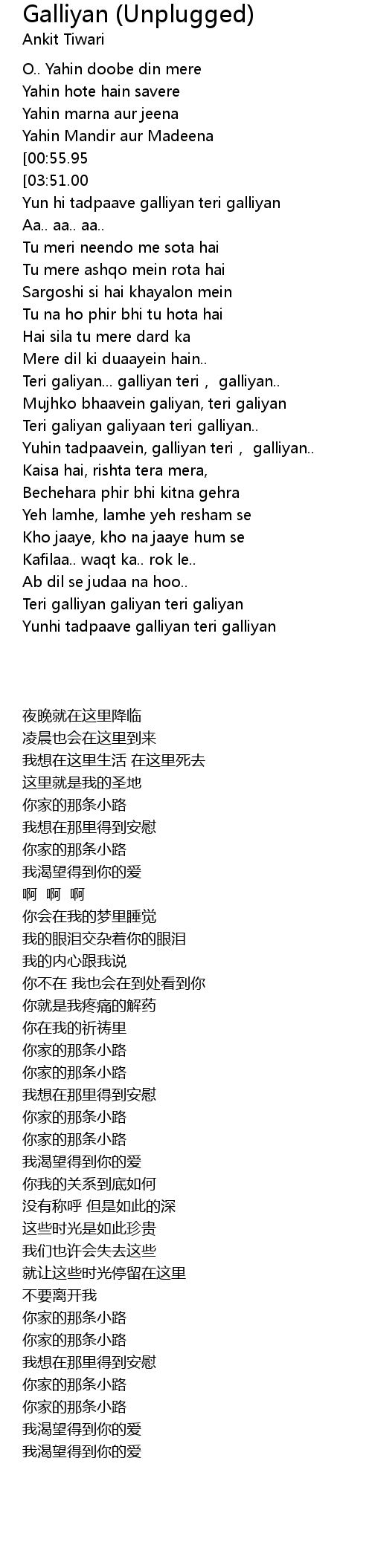 | [00:50.31][03:51.00] | Mujhko bhaave galliyan teri galliyan |