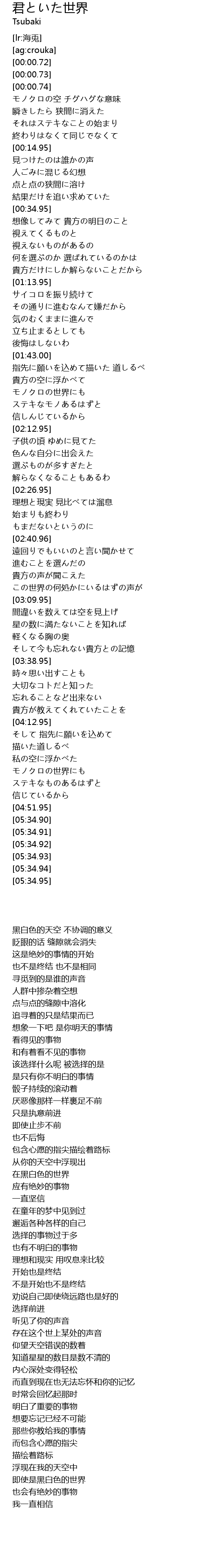 | [00:11.00] | 終わりはなくて同じでなくて |