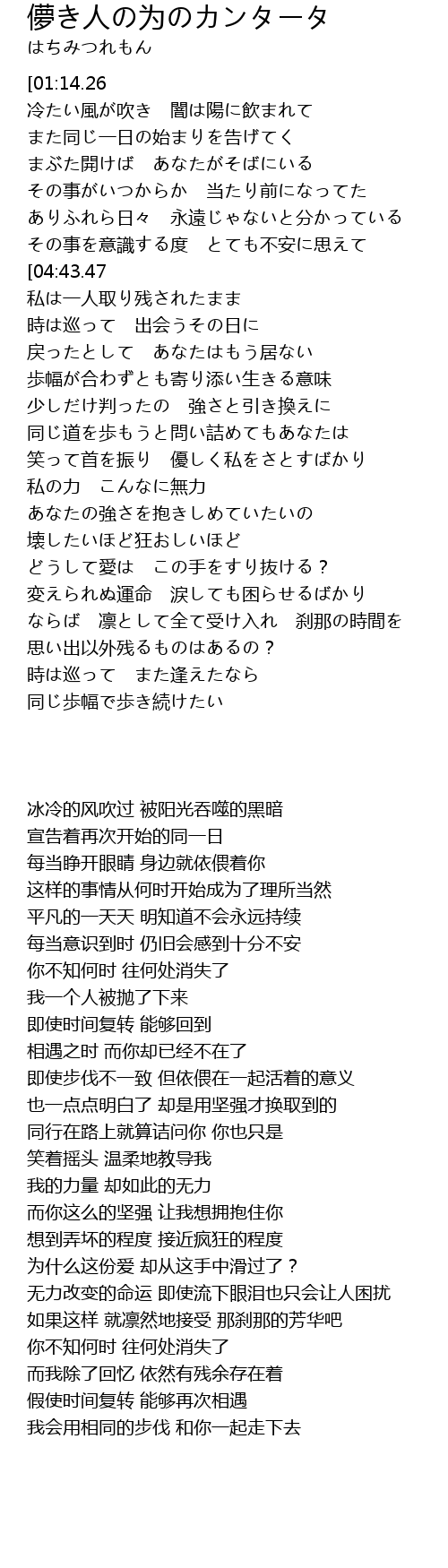 | [01:36.42][04:43.47] | あなたはいつか いずこへ消えて |