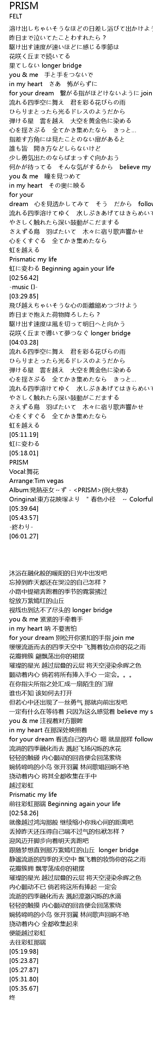 | [05:31.80] | Album:発熱巫女~ず - <PRISM>(例大祭8) |
