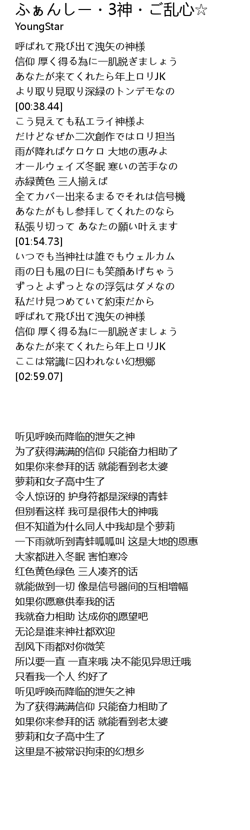 | [02:32.71] | 呼ばれて飛び出て洩矢の神様 |