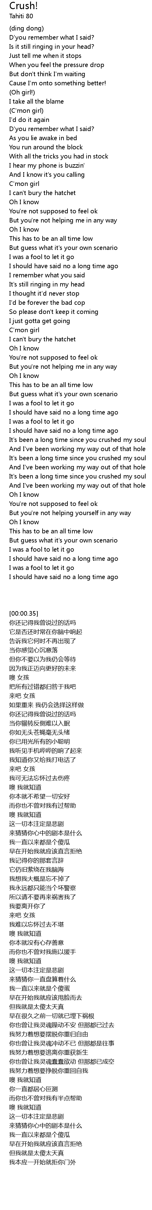 | [02:14.91] | It's been a long time since you crushed my soul |