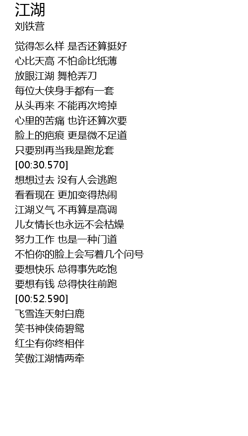 | [00:39.640] | jiāng hú yì qì bù zài suàn shì gāo diào |