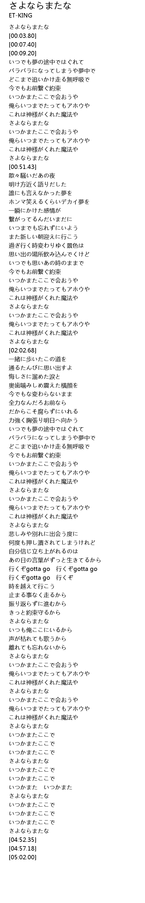 | [04:50.36] | さよならまたな |