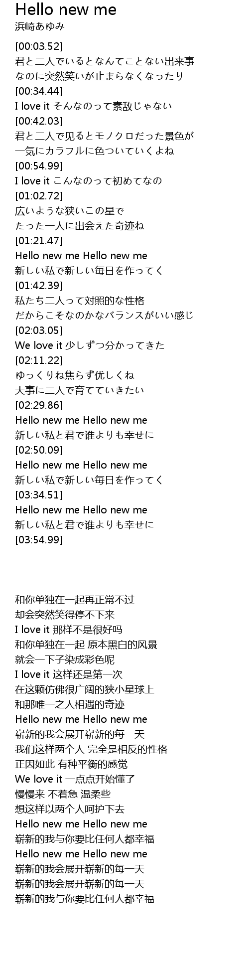 | [03:36.16] | Hello new me Hello new me |
