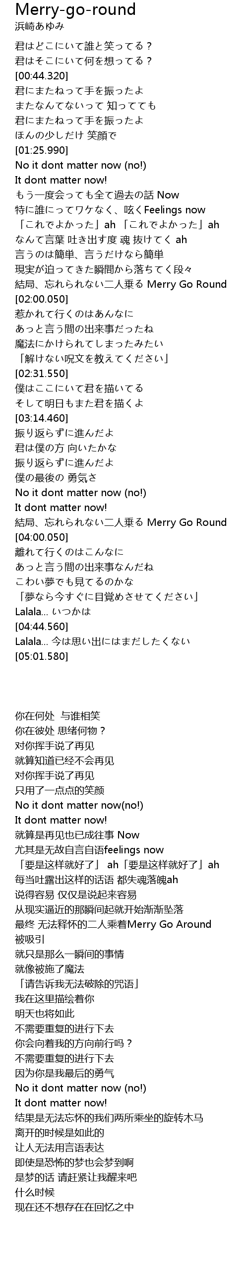 | [03:56.790] | 結局、忘れられない二人乗る Merry Go Round |
