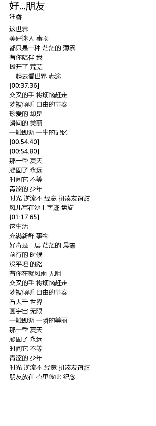 | [02:12.04] | 时光 逆流不 经意 拼凑友谊甜 |