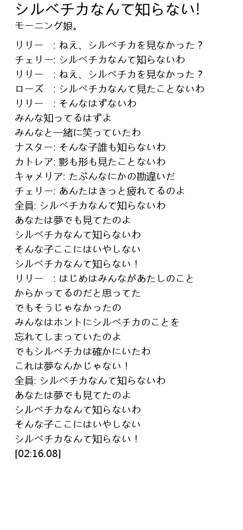 | [01:56.68] | 全員: シルべチカなんて知らないわ |