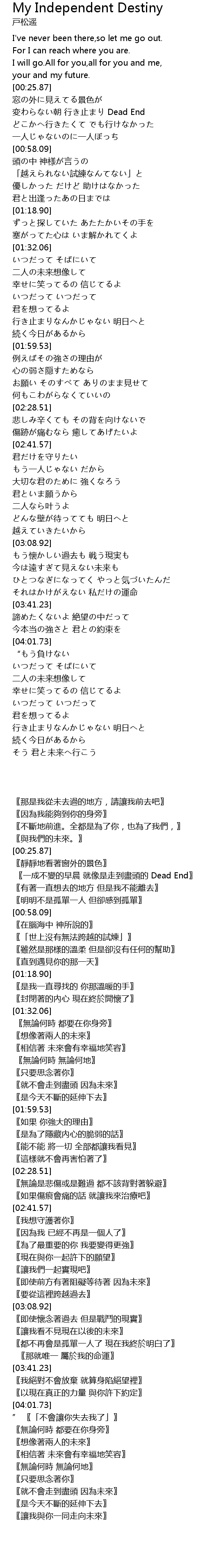 | [03:32.98] | それはかけがえない 私だけの運命 |