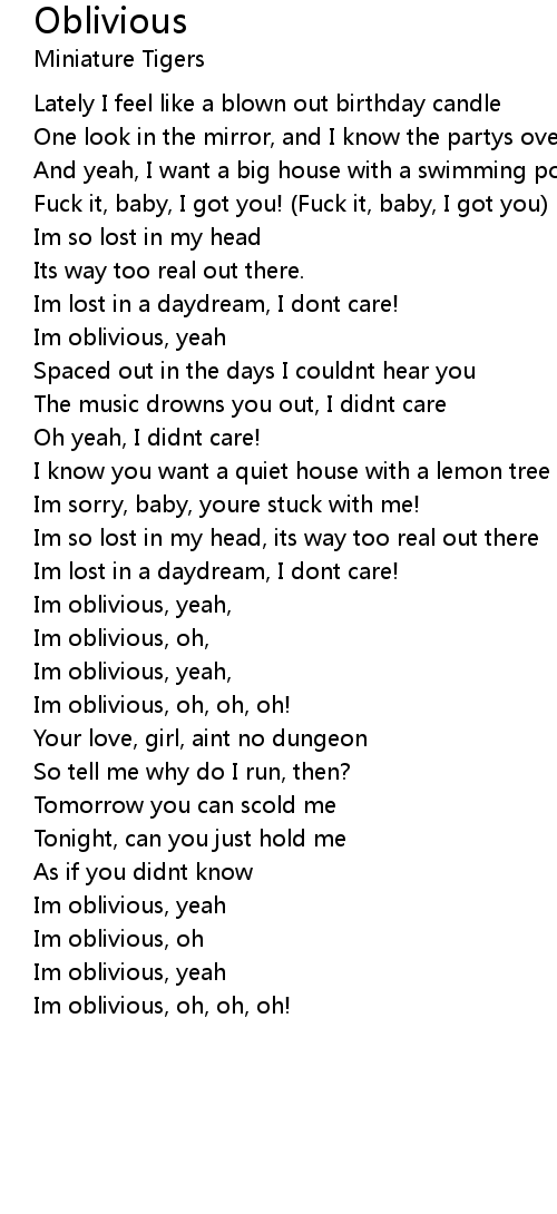Im oblivious, oh, |