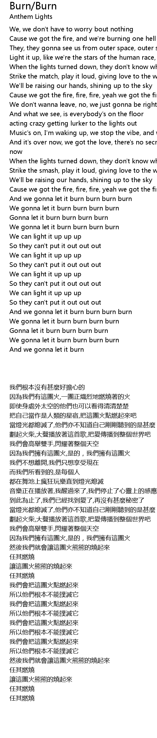 And we gonna let it burn burn burn burn |