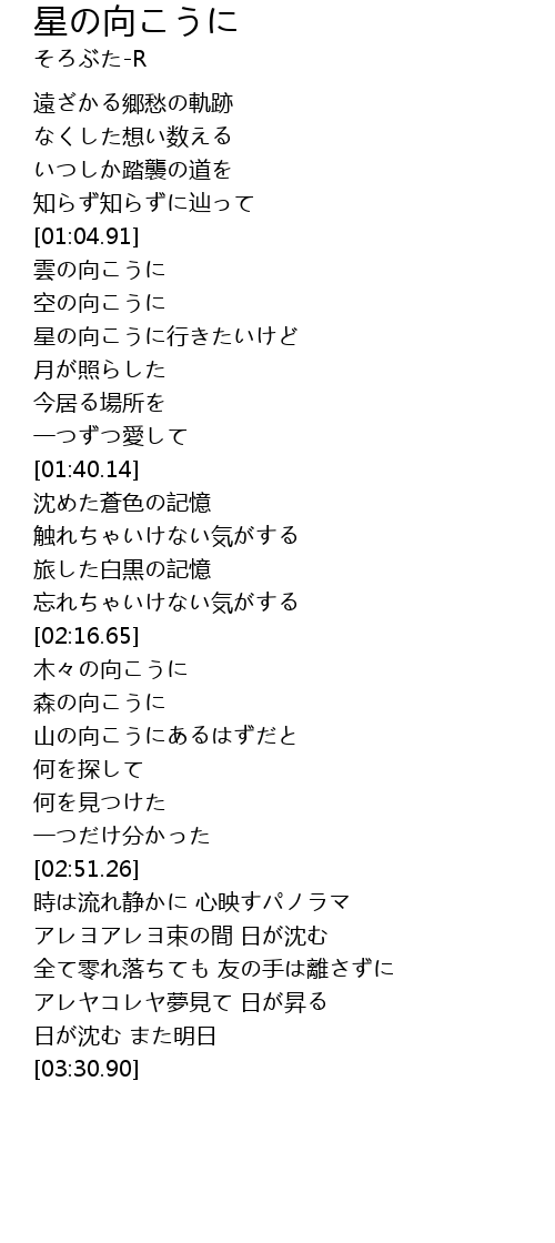 | [03:01.21] | アレヨアレヨ束の間 日が沈む |