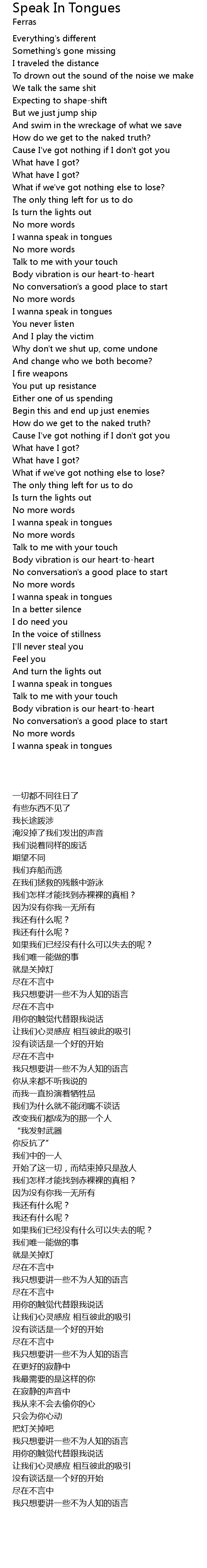 | [04:00.62] | I wanna speak in tongues |