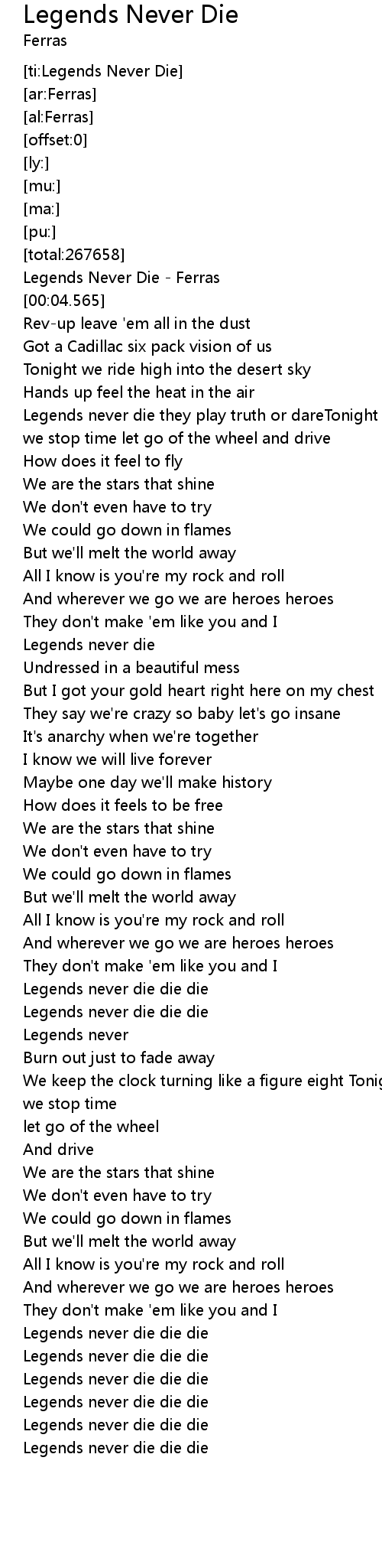 | [00:29.470] | Legends never die they play truth or dareTonight |