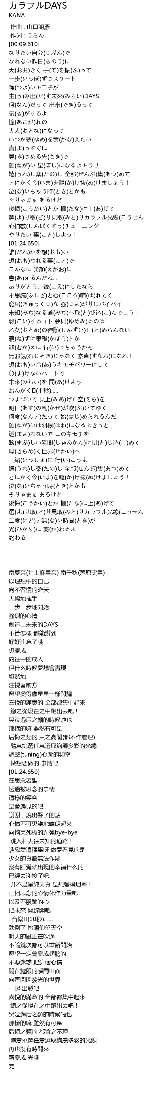 | [02:04.690] | 戀(こい)するコト 夢見(ゆめみ)るのは |